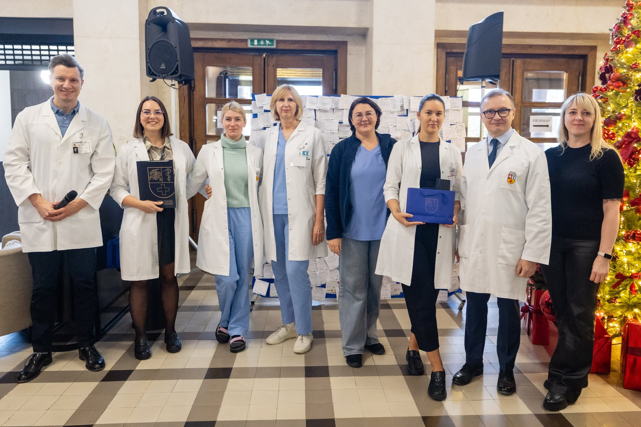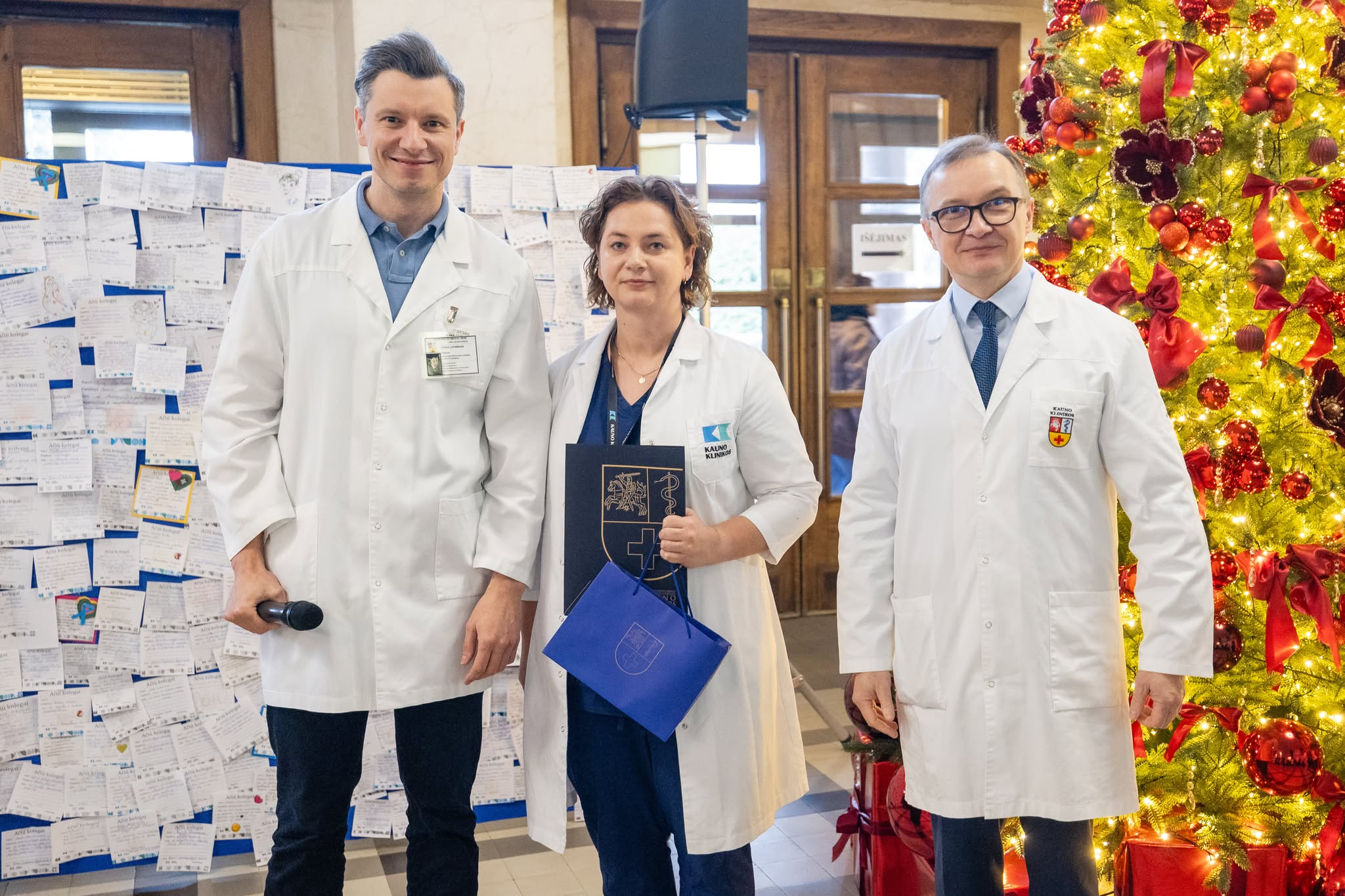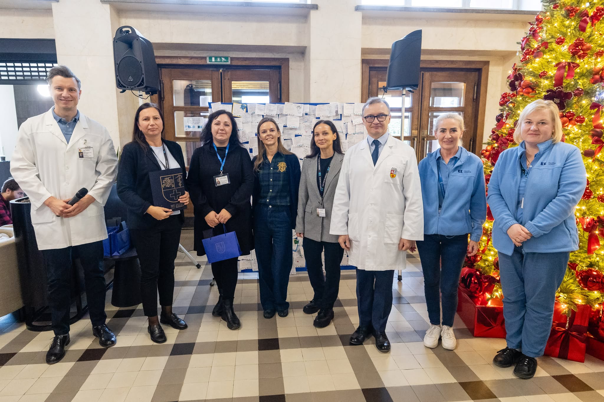 Padėkos dienos renginio metu Kauno klinikų centrinis vestibiulis virto jaukia bendrystės erdve: tarp žiemos švenčių dekoracijų ir originaliausios padėkos stende, o šalia jų rinkosi darbuotojai, nešini namuose keptais gardumynais. Muzika, šilta arbata ir neformalus bendravimas kūrė šventę, kurioje pagerbti nominacijų laimėtojai ir visa bendruomenė.