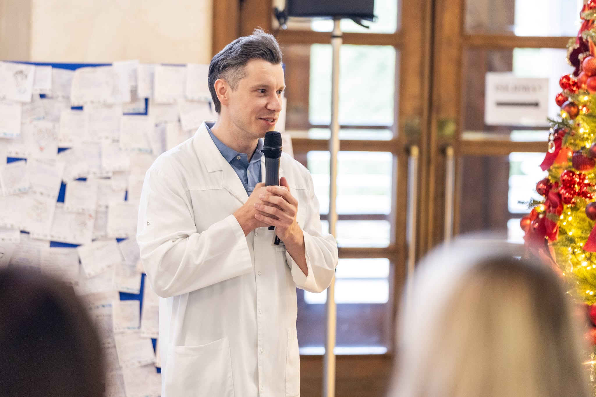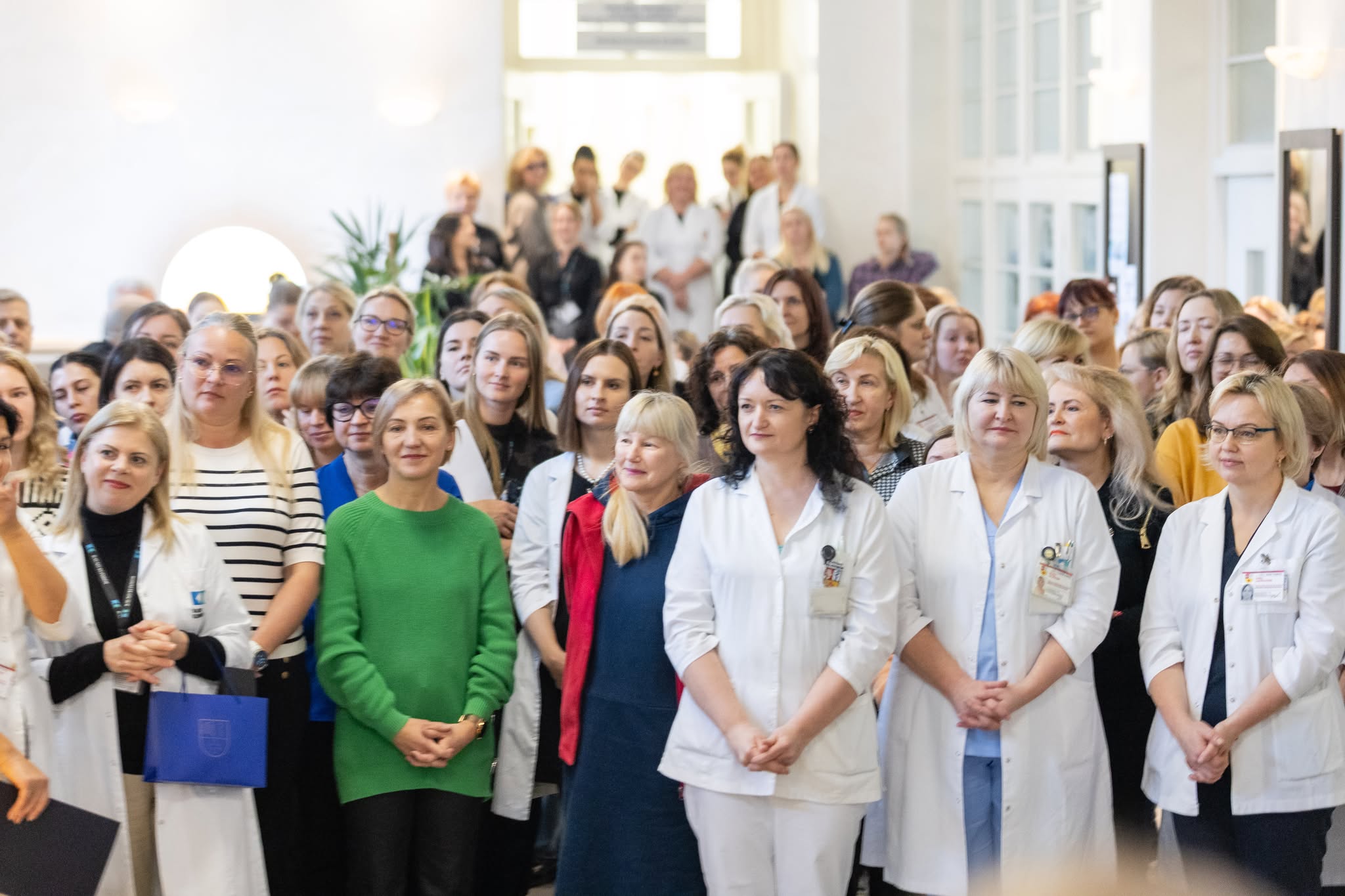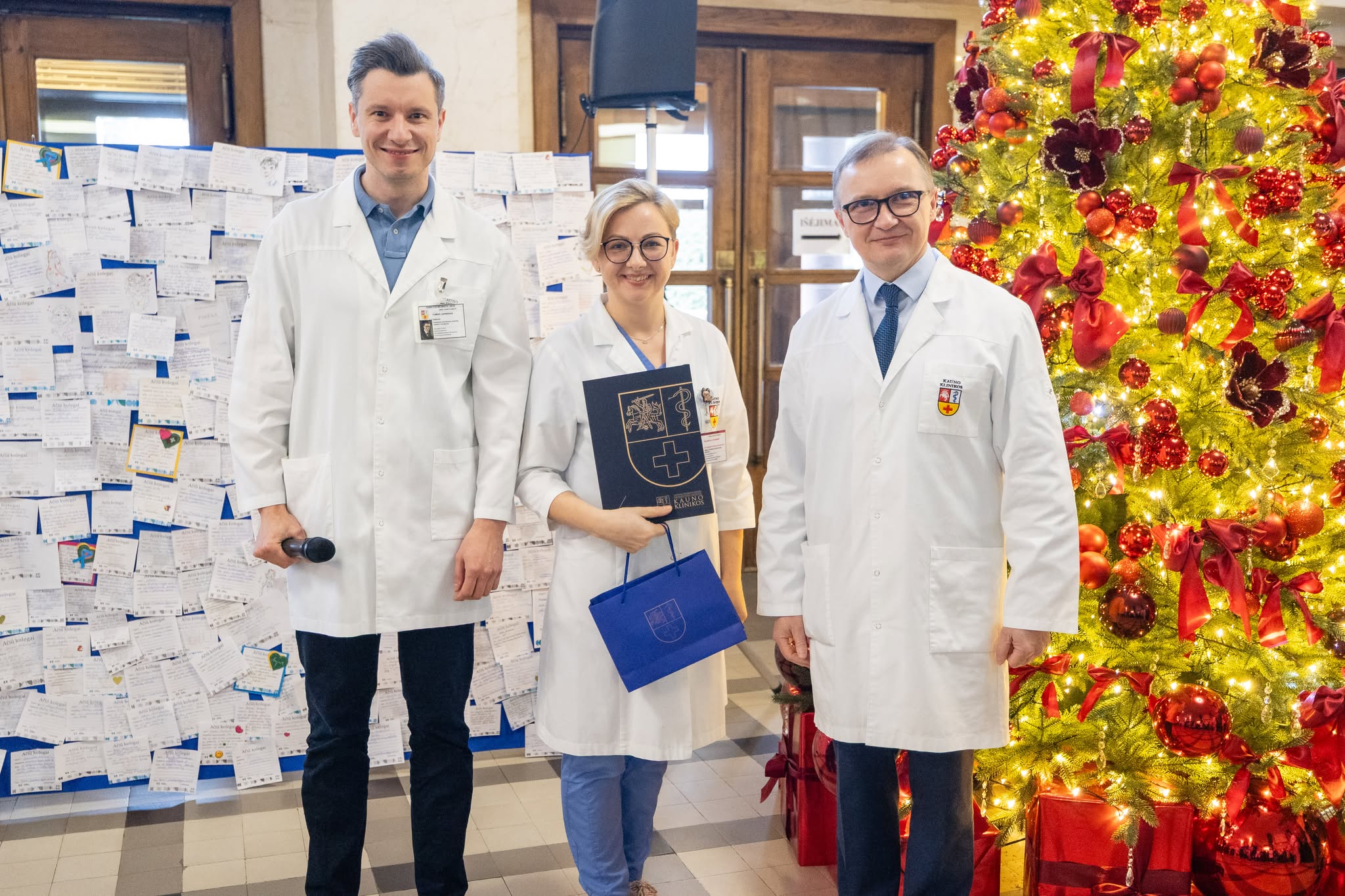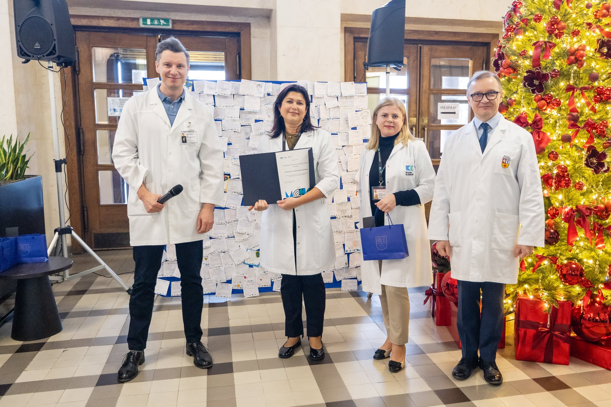 Padėkos dienos renginio metu Kauno klinikų centrinis vestibiulis virto jaukia bendrystės erdve: tarp žiemos švenčių dekoracijų ir originaliausios padėkos stende, o šalia jų rinkosi darbuotojai, nešini namuose keptais gardumynais. Muzika, šilta arbata ir neformalus bendravimas kūrė šventę, kurioje pagerbti nominacijų laimėtojai ir visa bendruomenė.