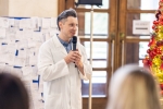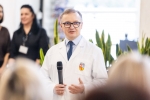 Prof. habil. dr. Renaldas Jurkevičius, Kauno klinikų generalinis direktorius, sveikindamas susirinkusiuosius pabrėžė, kad Padėkos diena – išskirtinė proga prisiminti paprastą, bet ypatingos reikšmės žodį „ačiū“. „Dažnai pastebime didžiuosius pasiekimus, tačiau pamirštame mažus dalykus: tą nedidelį „ačiū“ ir žmones, kurie yra šalia mūsų. Kartais tiesiog pritrūkstame laiko skirti daugiau dėmesio, nusišypsoti ar padėkoti tiems, kurie mus supa. Ši diena – galimybė tai padaryti: šiandien, rytoj ir visus metus. Dėkoti už empatiją, atsidavimą žmonėms, už pagalbą, kuri daro mūsų organizaciją ypač stiprią. Dėkoju jums už tai, kad kartu kuriame Kauno klinikas kaip išskirtinę ir tvirtą organizaciją“, – sakė generalinis direktorius.