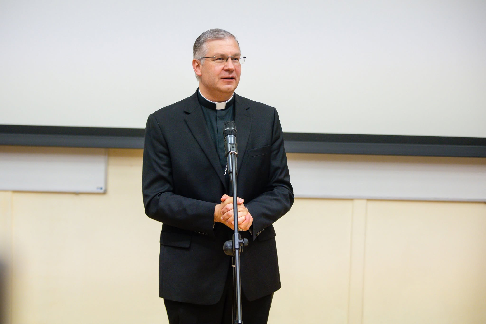 Kęstutis Kėvalas, Kauno arkivyskupas metropolitas, šventinės penkminutės metu pabrėžė pažinimo svarbą. „Nauji mokslo metai visada atneša naujos pradžios jausmą. Mokslas ir pažinimas yra tarsi žmonijos nuotykis, nuolatinis dialogas su tikrove. Mes keliame klausimus, ieškome atsakymų, o tikrovė į juos atsiliepia. Tai suteikia ne tik džiaugsmo, bet ir viltį – kad pažinimas tęsis, kad dar daug neatrasta ir laukia ateityje. Mokslo bendruomenė yra nuostabi vilties komanda, o mokslininkai – vilties piligrimai. Jie keliauja pirmyn, nes žino, kad yra daugiau, ką galima atrasti ir padovanoti žmonėms. Ir tas, kuris dovanoja, patiria tikrą laimę“, - sveikinimo kalboje sakė arkivyskupas.