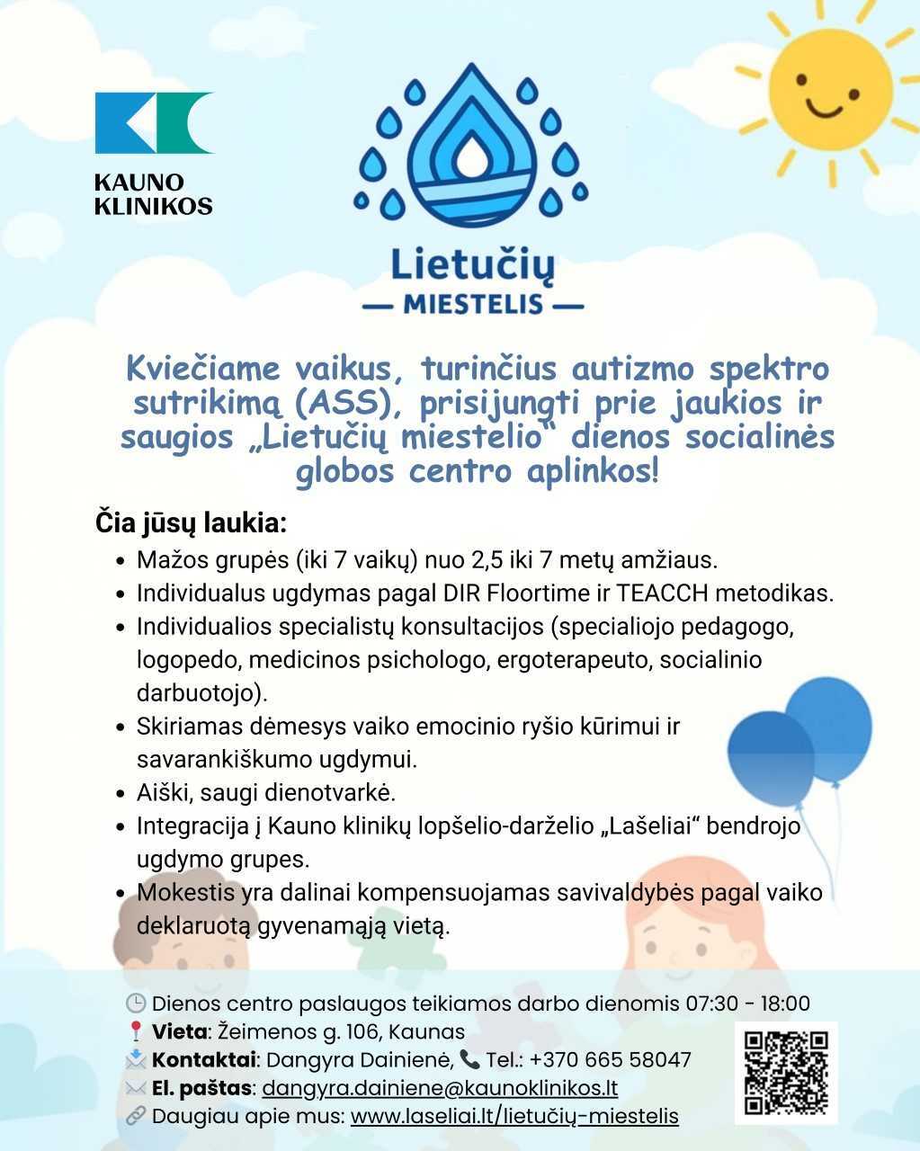 Kauno klinikų Dienos socialinės globos centras „Lietučių miestelis” kviečia vaikus, turinčius autizmo spektro sutrikimą