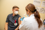 Šiandien nuo ryto pradėtas Kauno klinikų darbuotojų skiepijimas trečiąją (stiprinamąją) COVID-19 vakcinos doze. Pasiskiepyti trečiąja doze galės visi norintys ligoninės darbuotojai.