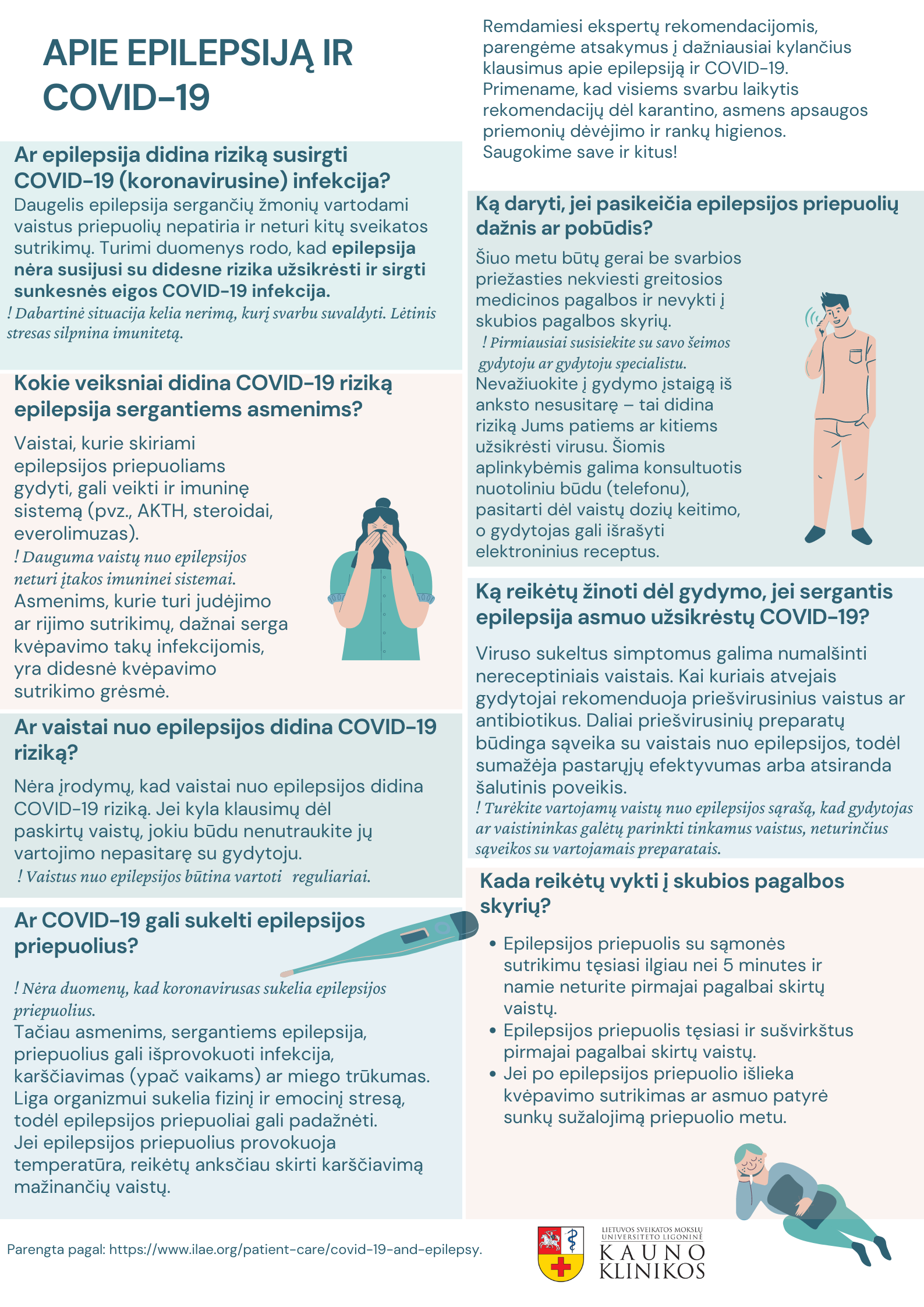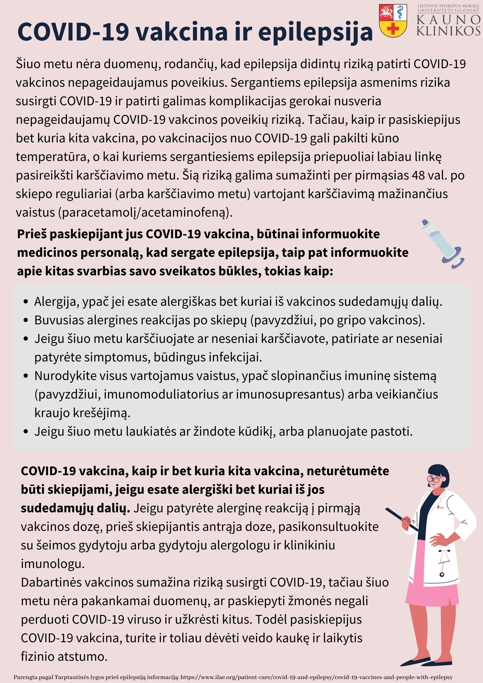 Daugiau informacijos galima rasti Tarptautinės lygos prieš epilepsiją puslapyje: https://www.ilae.org/patient-care/covid-19-and-epilepsy/covid-19-vaccines-and-people-with-epilepsy#English