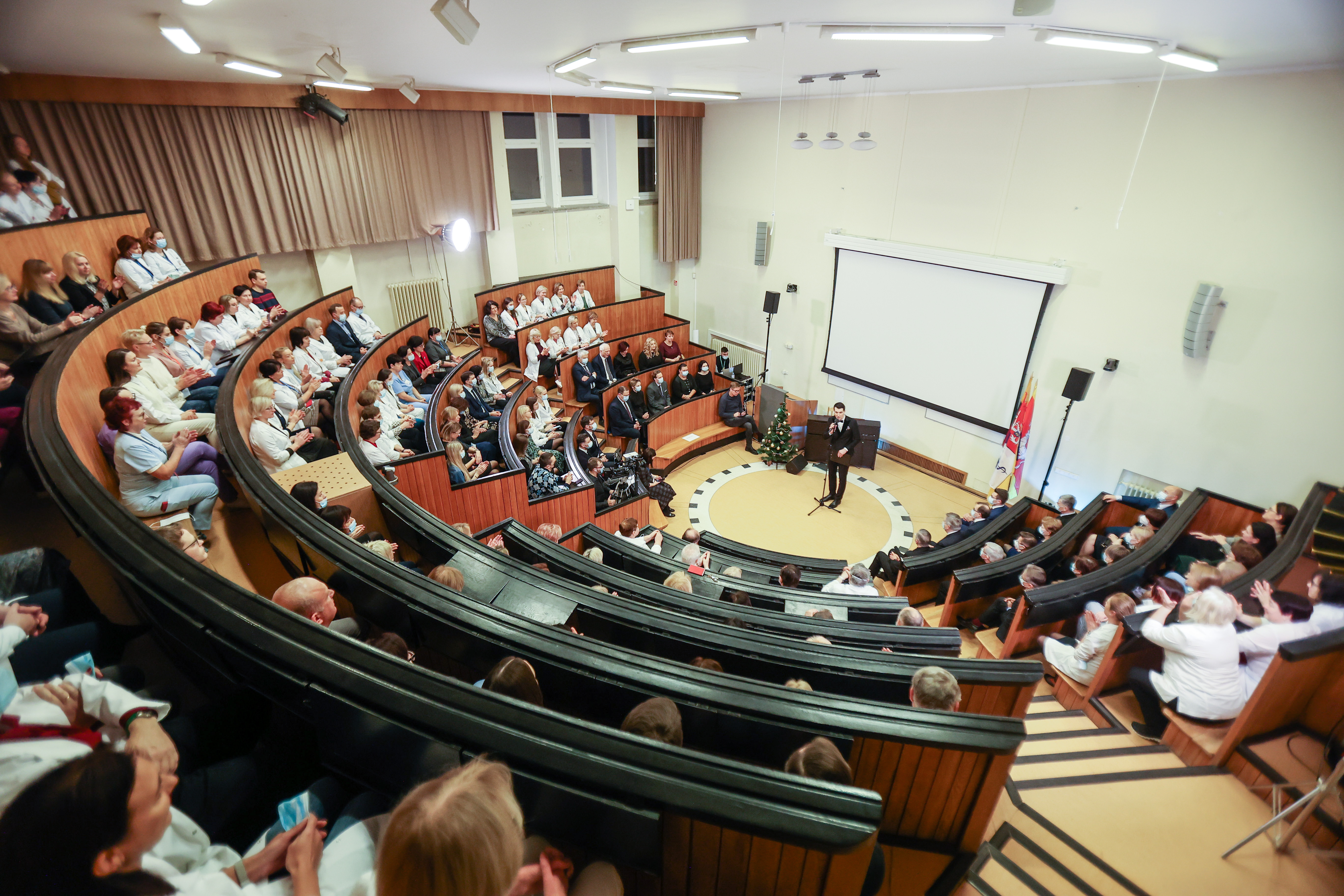 Penktadienį Kauno klinikose įvyko tradicinė šventinė penkminutė, kurios metu prisiminti svarbiausi metų įvykiai, pasiekimai, įgyvendinti projektai ir naujos idėjos. Renginio metu prasmingus sveikinimo žodžius lydėjo šventinė muzika ir bendruomenės narių šypsenos, o šventinę atmosferą sustiprino atlikėja Erica Jennings.