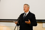 Lietuvos sveikatos mokslų universiteto rektorius prof. Rimantas Benetis, sveikindamas susirinkusią Kauno klinikų bendruomenę, skatino bent trumpam pamiršti rūpesčius ir pasidžiaugti Mokslo ir žinių diena. „Pandemijos metu, jūs, medikai, valdėte procesus, puikiai dirbote ir kovojote su infekcija. Bet iš sunkių situacijų mes išeiname stipresni ir galingesni, – sakė prof. R. Benetis. – Ačiū Kauno klinikoms už bendradarbiavimą, kurį Universitetas jaučia; už palaikymą, bendras idėjas ir darbus.“