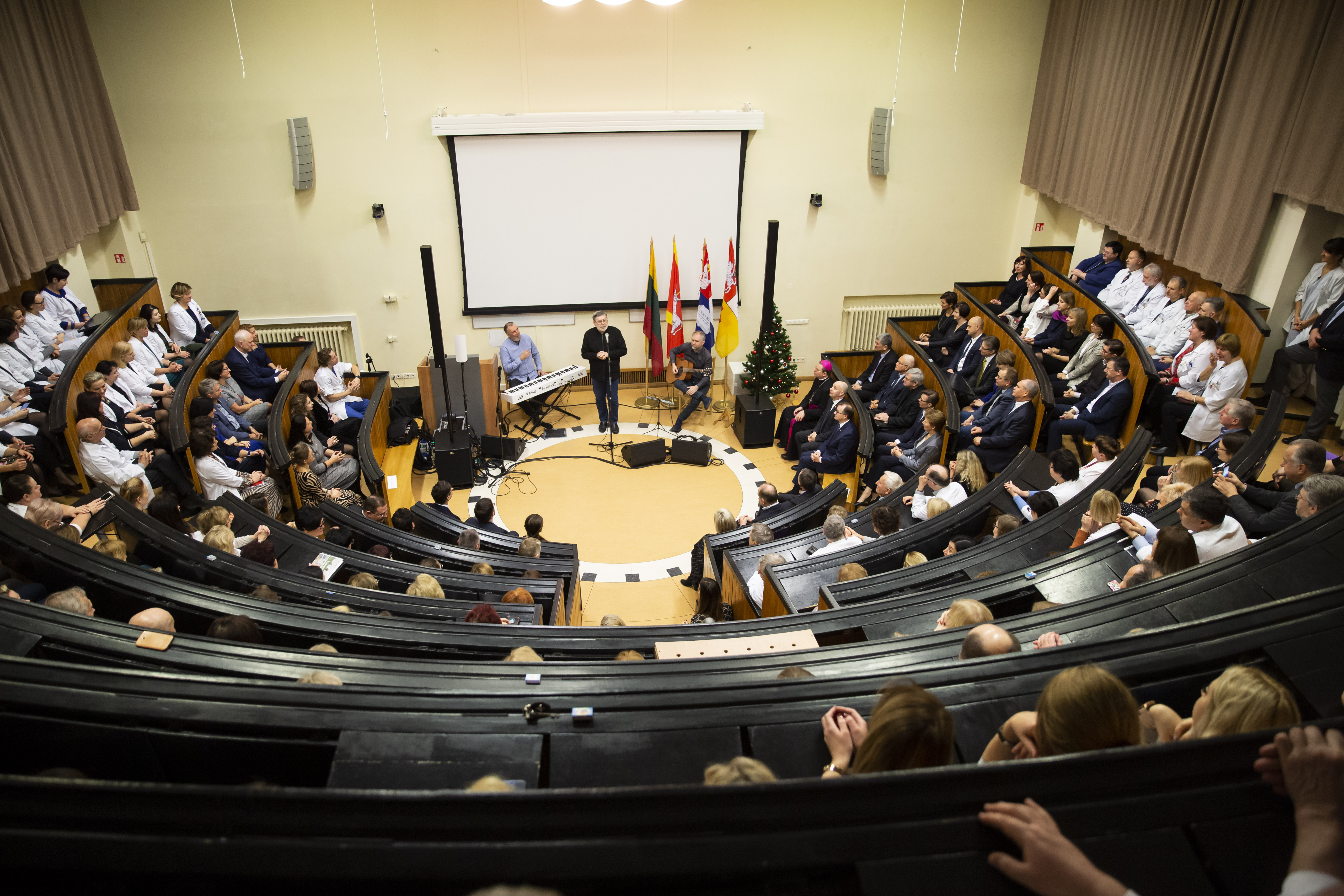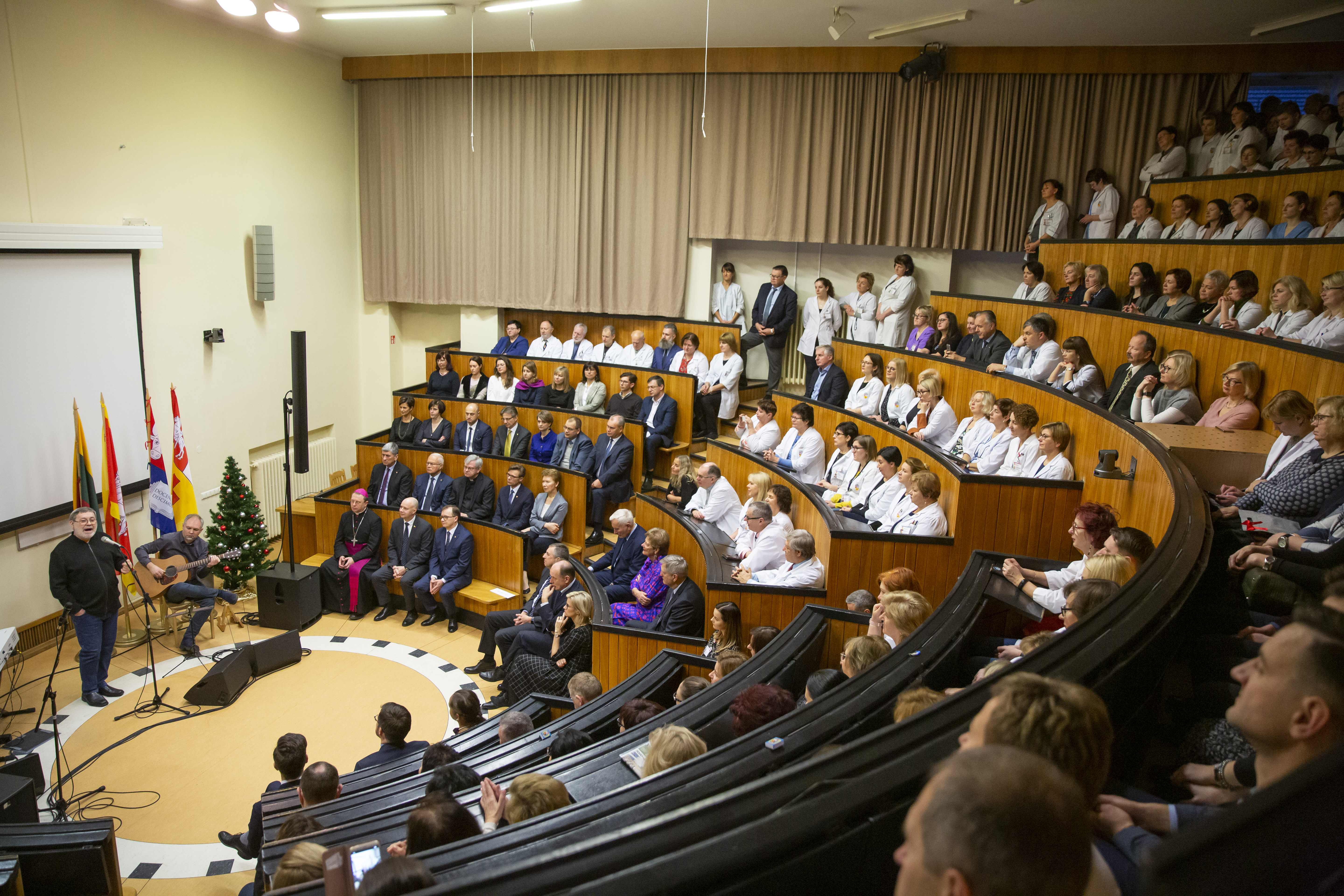 Tardamas sveikinimo žodį sveikatos apsaugos ministras prof. Aurelijus Veryga visiems Kauno klinikų darbuotojams linkėjo atrasti laiko malonioms smulkmenoms kasdienybėje. „Šie metai Lietuvai buvo augimo metai beveik visose srityse, taip ir sveikatos sektoriuje. Džiaugiuosi, kad ir universiteto ligoninės atrado bendrą kalbą ir siekia bendradarbiauti dėl vieno bendro tikslo – Lietuvos pacientų gerovės.“