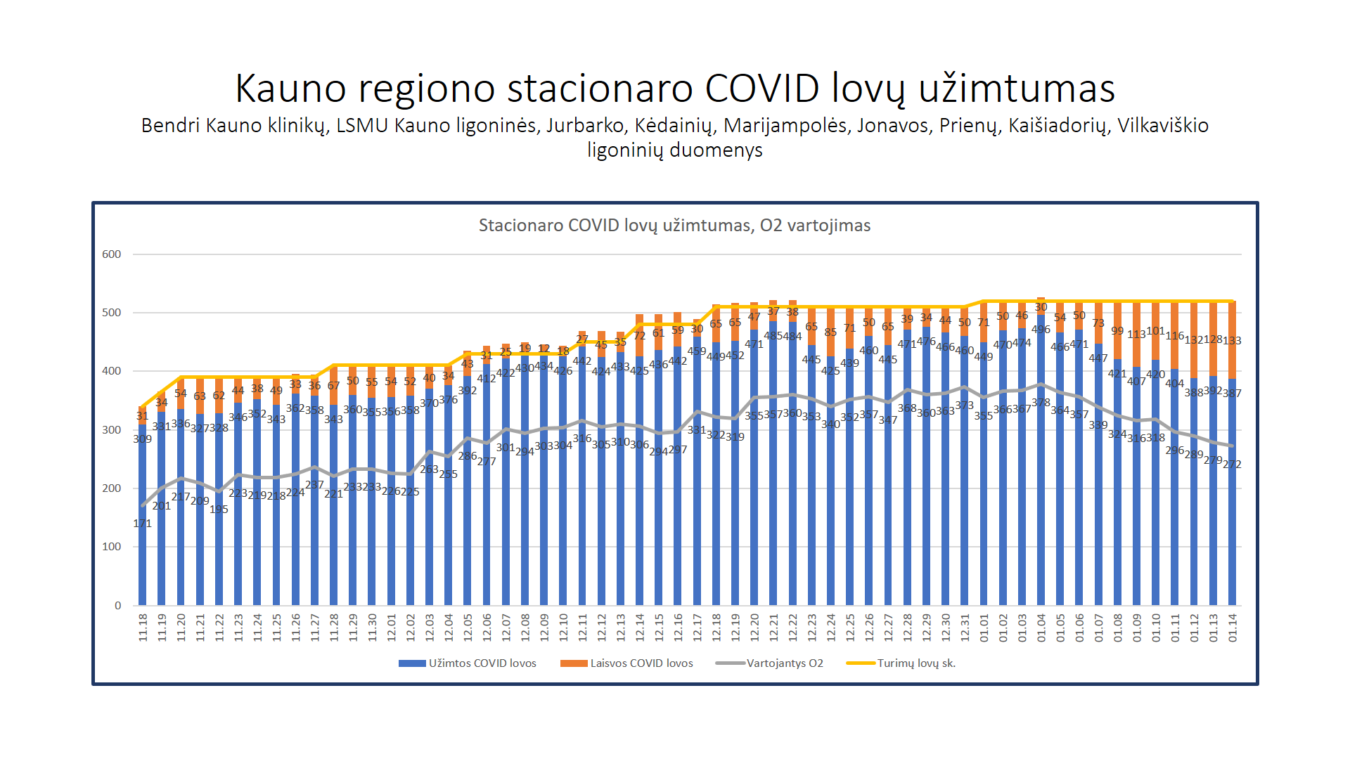Nuo rytojaus Kėdainių ligoninėje nuo 70 terapinio profilio covid lovų skaičius mažinamas iki 45. Taip pat mažėja reanimacinio ir intensyviosios terapijos covid lovų skaičius: Kauno klinikose – nuo 31 iki 28 lovų, o LSMU Kauno ligoninėje – nuo 22 iki 18.