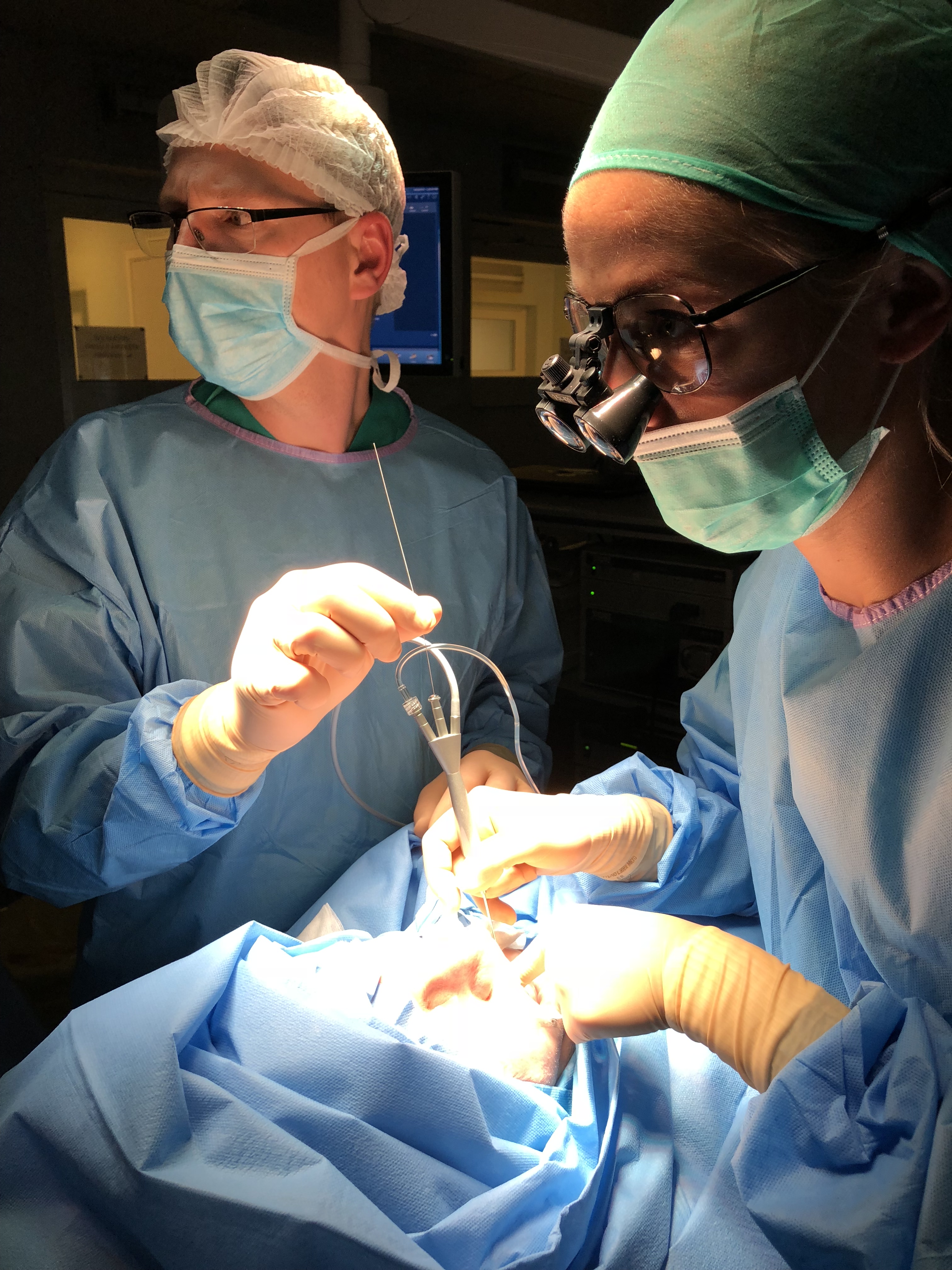 Pirmąsias procedūras Kauno klinikų Integruotoje operacinėje atliko gydytoja otorinolaringologė N. Ulozaitė-Stanienė ir doc. Vykantas Liutkevičius. Gydymo metodikos gydytoja N. Ulozaitė-Stanienė mokėsi Ženevoje (Šveicarija).