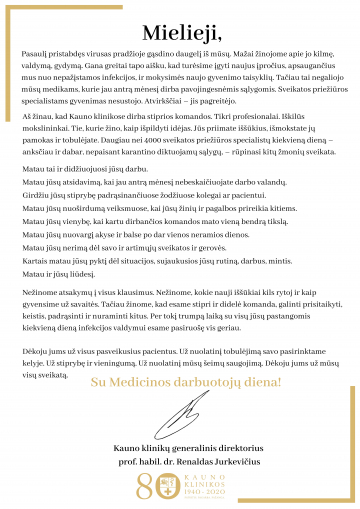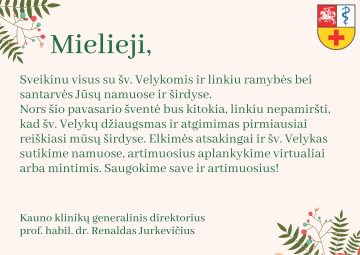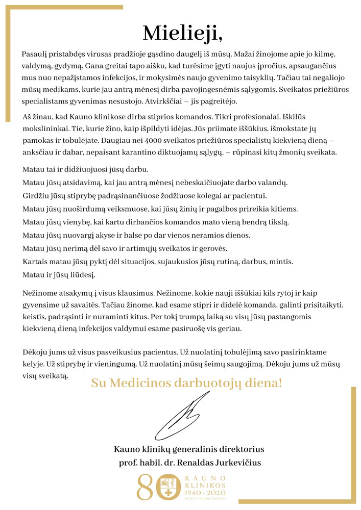 Šiandien Kauno klinikų generalinis direktorius prof. habil. dr. Renaldas Jurkevičius pristatė ligoninės ataskaitą už praėjusius metus ir su svarbiausiais pokyčiais, pasiekimais ir naujų metų planais nuotoliniu būdu supažindino ligoninės bendruomenę, dalininkus ir Stebėtojų tarybos narius.